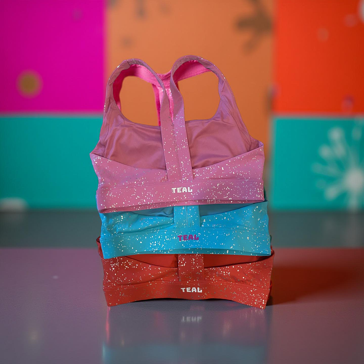 PowerLUXE from TEAL is High Energy Fabric is perfect for all activities! This medium / high support bra with custom designed built-in comfort that lets you wear it all day long! Oh yes, and it SPARKLES!!!
